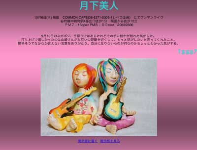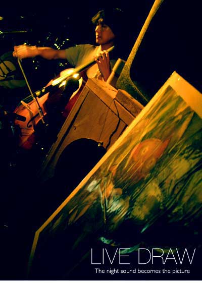 あっけにとられて、止まっていた手を再び蘇らせてくれたのは、月下美人のお二人さん↓ああ、美しい音色、癒されます。眠たくなるような歌声に、絵の様子も徐々に平和を取り戻していきます。取り戻すという言い方は、井上さんの唄を否定しているように感じるかもしれませんが、そういう意味ではないのでご注意を。唄に是も非も無いのです。あるのは、唄という魂のみ。それが存在する限り意味があるのですから。 月下美人さんの唄は、まさに月下の宴にもってこいのメロディです。